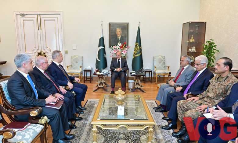 وزیراعظم پاکستان محمد شہباز شریف سے ترکیہ کے وزیر خارجہ ہاکان فیدان اور وزیر قومی دفاع یاسر گلر نے وزیراعظم ہاؤس اسلام آباد میں اہم ملاقات کی۔ ملاقات میں دونوں برادر اسلامی ممالک کے مابین دوطرفہ تعلقات کو وسعت دینے، اسٹریٹجک شراکت داری میں تبدیل کرنے اور کثیر جہتی شعبوں میں تعاون کو فروغ دینے پر تفصیلی تبادلہ خیال کیا گیا۔