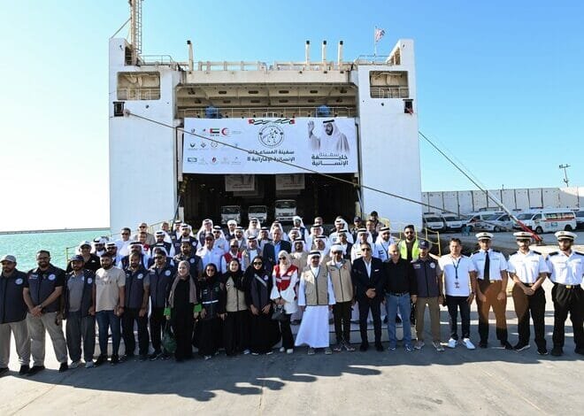 قاہرہ/ابوظہبی (بین الاقوامی نیوز ڈیسک) — فلسطینی عوام کے لیے جاری انسانی ہمدردی کی تاریخی مہم کے تحت متحدہ عرب امارات کی جانب سے امدادی سامان لے جانے والا آٹھواں بحری جہاز ’خلیفہ‘ منگل کے روز مصر کی العریش بندرگاہ پر پہنچ گیا۔ یہ اب تک غزہ کی پٹی کے متاثرہ شہریوں کے لیے روانہ کیے گئے امدادی جہازوں میں سب سے بڑا بحری جہاز ہے، جس پر 7 ہزار 166 ٹن سے زائد امدادی سامان لدا ہے۔