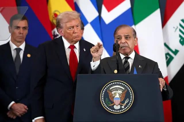 "پاکستان سے میرے فیورٹ فیلڈ مارشل یہاں موجود نہیں آسکے، مگر وزیراعظم شہباز شریف یہاں موجود ہیں، اور ان کا کردار امن کے قیام میں بے حد اہم رہا ہے۔”