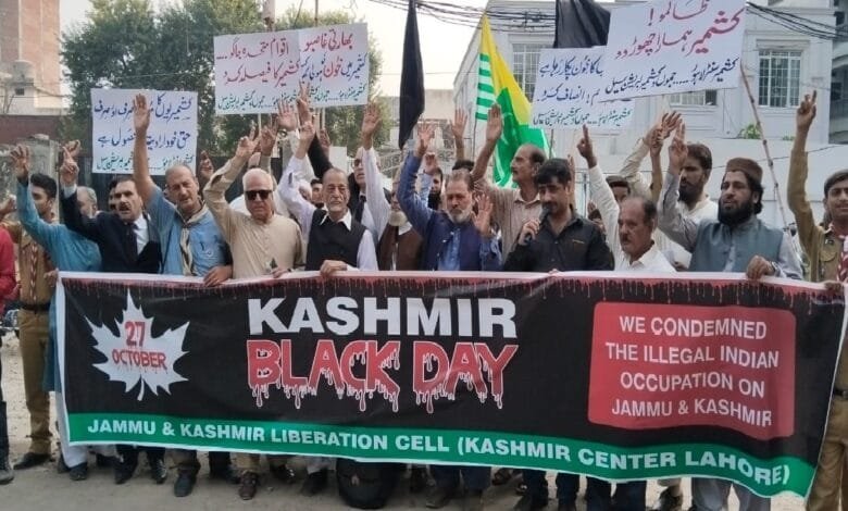 ریاست جموں و کشمیر پر بھارت کے غیر قانونی قبضے اور فوجی جارحیت کے 78 سال مکمل ہونے پر کشمیر سنٹر لاہور اور جموں و کشمیر لبریشن سیل کے زیر اہتمام یومِ سیاہ بھرپور جوش و جذبے کے ساتھ منایا گیا۔ اس موقع پر لاہور پریس کلب کے باہر ایک بڑے احتجاجی مظاہرے اور دستخطی مہم کا اہتمام کیا گیا، جس میں شہریوں، سول سوسائٹی، طلباء، بوائز اسکاؤٹس، وکلاء، تاجروں، اور مختلف سیاسی و سماجی جماعتوں کے نمائندوں نے بڑی تعداد میں شرکت کی۔