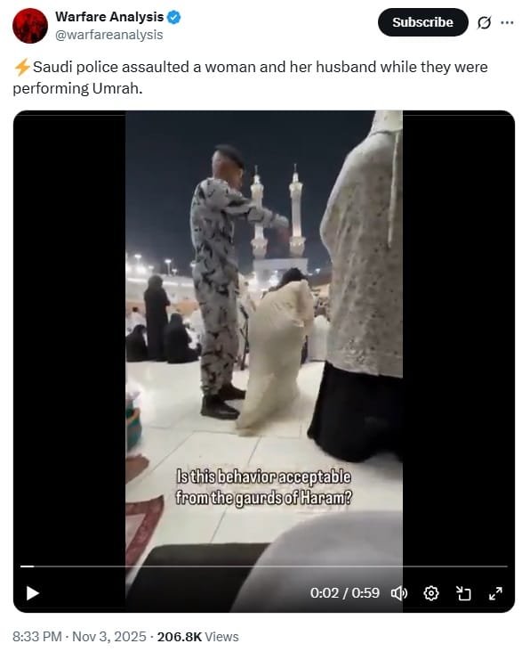 مکہ مکرمہ: سوشل میڈیا پر ایک ویڈیو تیزی سے گردش کر رہی ہے جس میں دعویٰ کیا جا رہا ہے کہ سعودی پولیس اہلکاروں نے ایک خاتون اور اس کے شوہر کو عمرہ کی ادائیگی کے دوران زدوکوب کیا۔ ویڈیو کے منظر عام پر آتے ہی یہ واقعہ دنیا بھر کے صارفین کے درمیان موضوعِ بحث بن گیا، جبکہ سعودی حکام کی جانب سے اس معاملے کی وضاحت سامنے آئی ہے۔