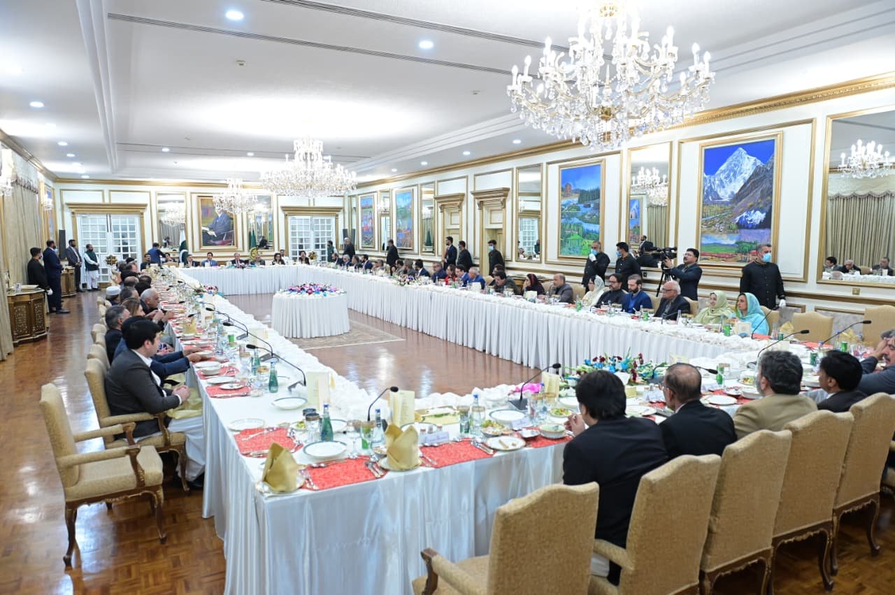 آئینی ترمیم کی منظوری کے بعد وزیراعظم شہباز شریف نے وزیراعظم ہاؤس میں حکومتی اور اتحادی جماعتوں کے سینیٹرز کے اعزاز میں عشائیہ دیا۔