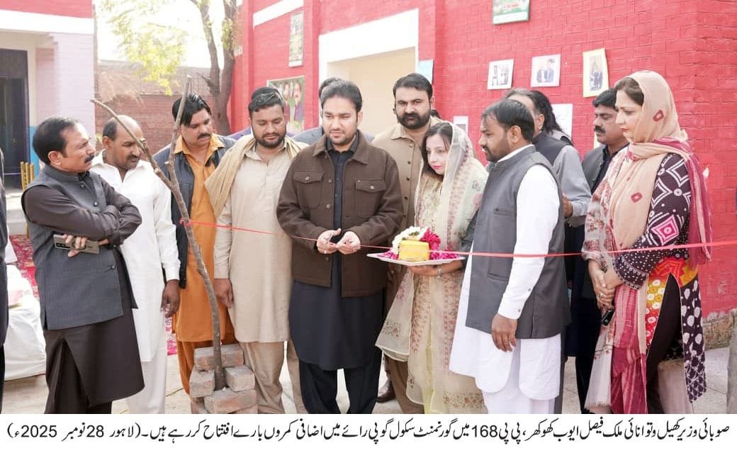 صوبائی وزیر کھیل و انرجی پنجاب ملک فیصل ایوب کھوکھر نے پی پی 168 کے علاقے گوپے رائے میں گورنمنٹ پرائمری اسکول کے لیے نئی اضافی کلاس بلاک کا سنگِ بنیاد رکھا، جس سے علاقے میں تعلیمی سہولتوں میں نمایاں بہتری کی توقع ہے۔ اس موقع پر چیف آف ڈویلپمنٹ عمیر سیف کھوکھر اور ایجوکیشن کوآرڈینیٹر ثقلین یوسف بھی ان کے ہمراہ تھے۔ یہ اقدام علاقے کے تعلیمی معیار کو بہتر بنانے کی جانب ایک اہم قدم ہے۔