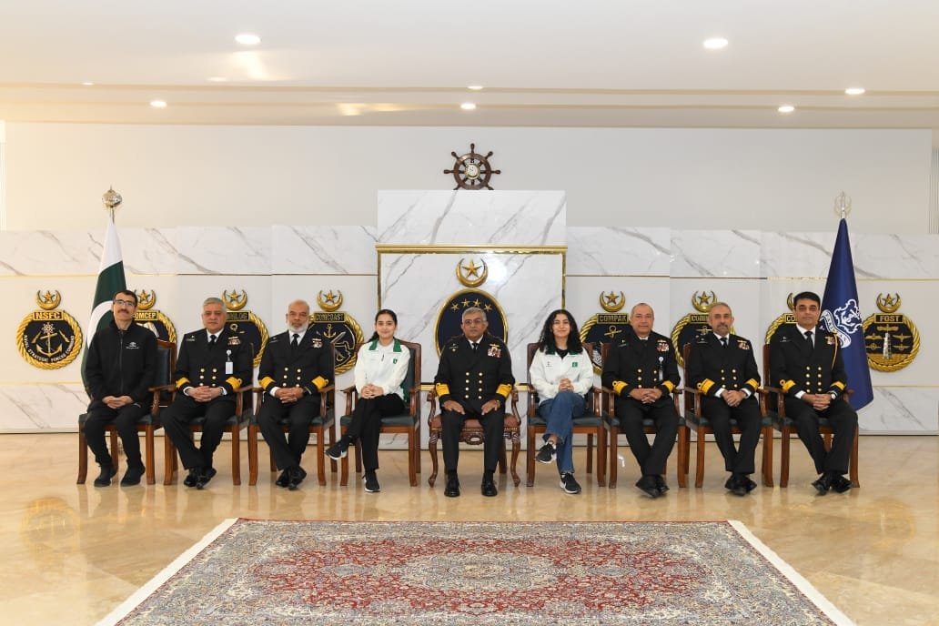 چیف آف دی نیول اسٹاف ایڈمرل نوید اشرف کی اسکواش کے ابھرتے ہوئے کھلاڑیوں ماہنور علی اور سحرش علی سے ملاقات: خواتین کھلاڑیوں کی حمایت کا عزم