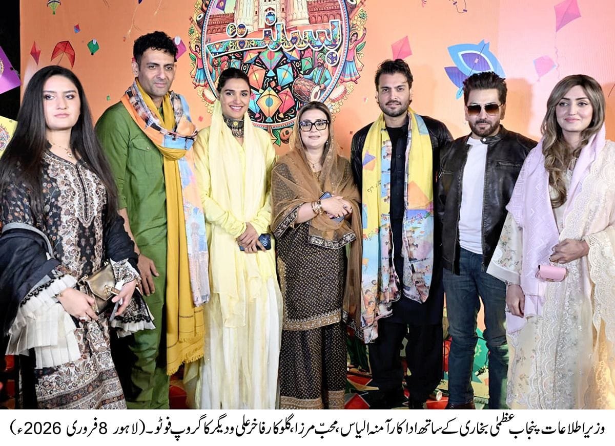 دوسری جانب کراچی اور بیرونِ ملک سے شوبز انڈسٹری کے معروف ستارے بھی بسنت منانے دہلی گیٹ پہنچے۔ اداکار یاسر حسین، میکال ذوالفقار، عدیل، محب مرزا، اداکارہ جگن کاظم، علی زرغون، فریال خان، اداکارہ گوہر اور اداکارہ آمنہ نے بسنت کی تقریبات میں شرکت کی اور لاہور کی رونقوں کو سراہا۔ فنکاروں نے بسنت کی بحالی پر وزیراعلیٰ پنجاب مریم نواز کا شکریہ ادا کیا اور لاہور و بسنت کو لازم و ملزوم قرار دیا۔اداکار میکال ذوالفقار نے کہا کہ لاہور دوبارہ اپنے خوبصورت رنگوں کے ساتھ جاگ چکا ہے اور وہ بسنت کی واپسی پر بے حد خوش ہیں۔ اداکار عدیل نے کہا کہ وہ مریم نواز کے فین ہو چکے ہیں اور بسنت کی بحالی کا پورا کریڈٹ وزیراعلیٰ پنجاب کو جاتا ہے، جبکہ ان کے مطابق بسنت سے 350 ملین روپے کا ریونیو بھی اکٹھا ہوا ہے۔ اداکار یاسر حسین نے بسنت کے شاندار پروگرام کے انعقاد پر وزیر اطلاعات و ثقافت پنجاب عظمٰی بخاری کا شکریہ ادا کرتے ہوئے کہا کہ لاہور واقعی زندہ دلوں کا شہر ہے، جسے انہوں نے اپنی آنکھوں سے دیکھا۔ اداکار محب مرزا نے کہا کہ لاہور کی سڑکوں پر ہر طرف بسنت کے رنگ اور رونقیں نمایاں تھیں۔تقریب کے دوران ملکی و غیرملکی مہمانوں اور فنکاروں نے بسنت کی خوشیوں میں بھرپور شرکت کی اور لاہور کی ثقافتی روایت کو دنیا بھر میں اجاگر کرنے کے عزم کا اظہار کیا۔