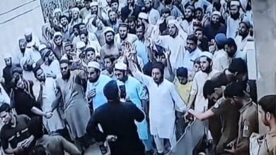 مقامی ٹی ایل پی اور دیگر مذہبی علما کا اسلامیہ پارک لاہور میں احمدیوں کی عبادت گاہ کے باہر مظاہرہ